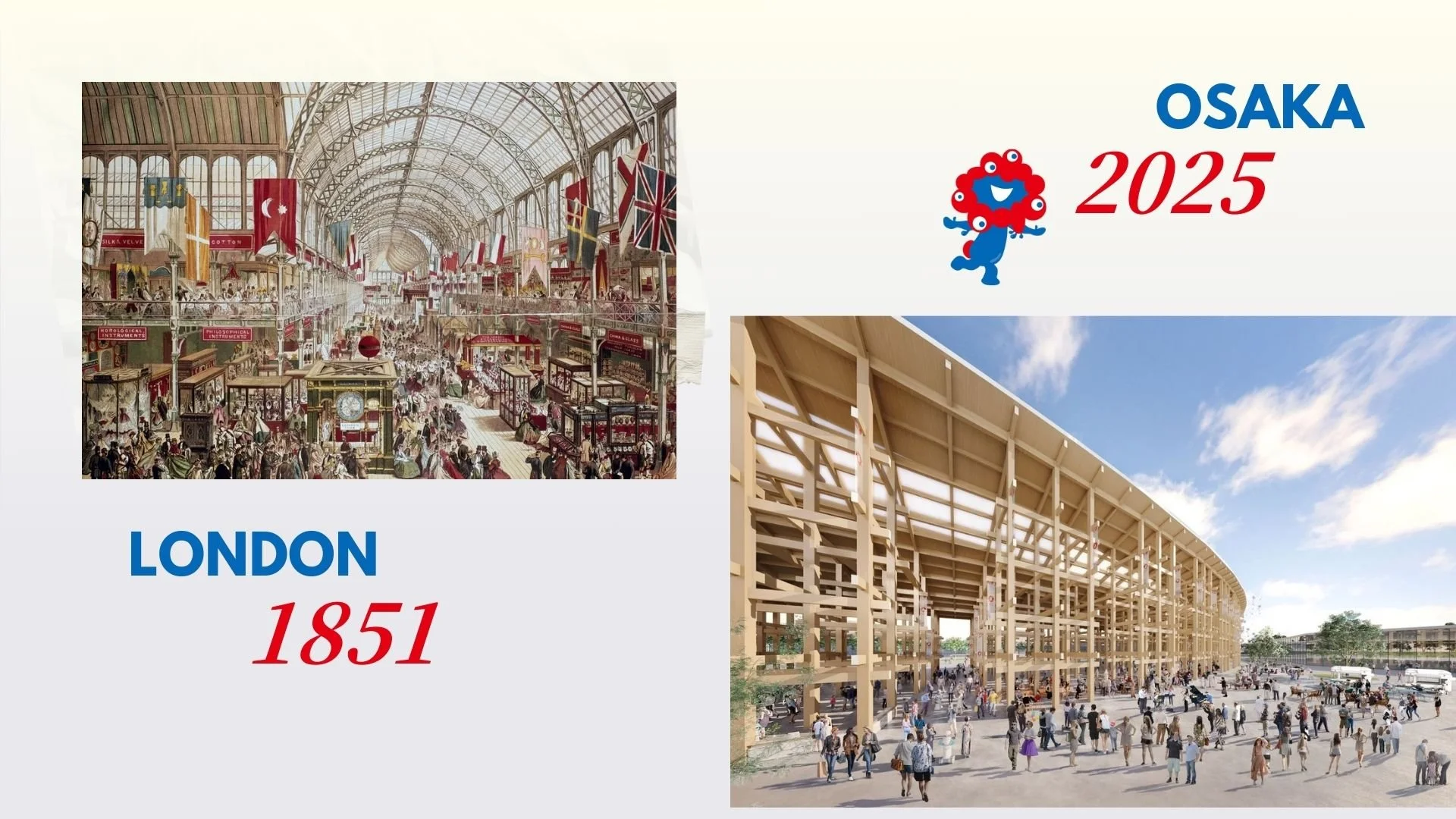 全世界第一場世界博覽會,於1851年在英國倫敦舉行,工業革命後,英國希望以博覽形式,展現自己傲視全球的工業發明成果。當時由英國王室舉辦,透過邀請當時世界均有殖民地的全球性霸權帝國以博覽形式同場展示各國出品,來達成「世界」博覽會。 這對話空間及展示技術發展趨勢的做法是世博的雛型,成為了後來世博的啟發。大阪曾在五十五年前舉辦過1970 年的世界博覽會,今之是大阪第二次舉辦世界博覽會。有許多在當年大阪世博進行首次發佈的新奇展品,現在已經普及於日常生活當中,為我們世界所用。例如電動汽車、罐裝咖啡、免治馬桶等。